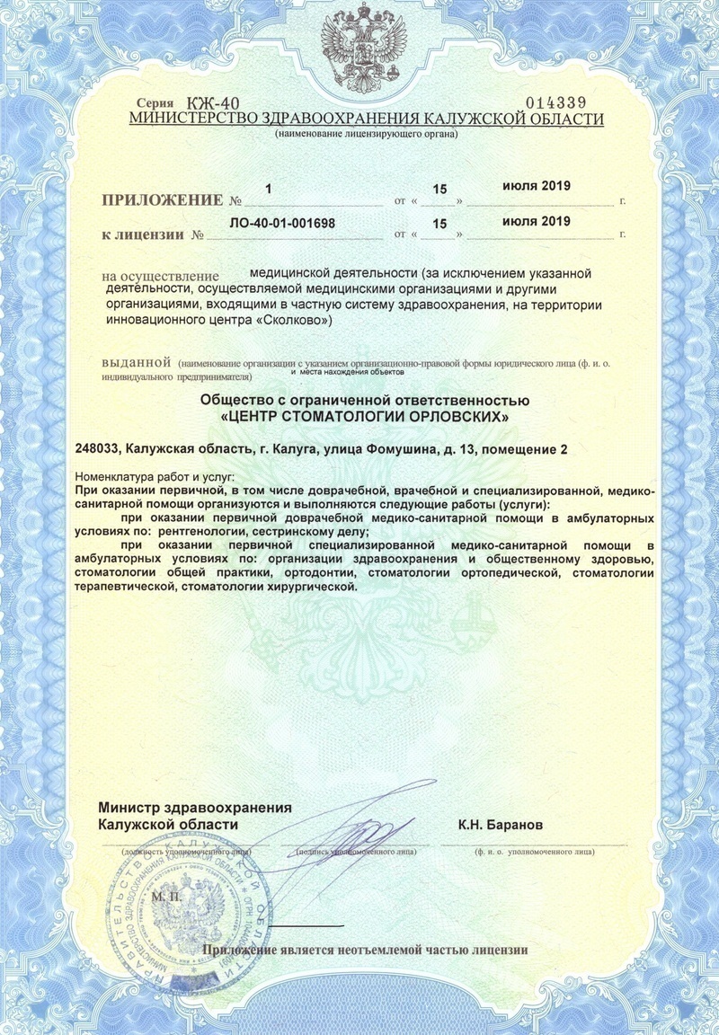 Диапазоны цен на приём врачей и специалистов, услуги и диагностику в Orlovsky Dental Center в Калуге.
