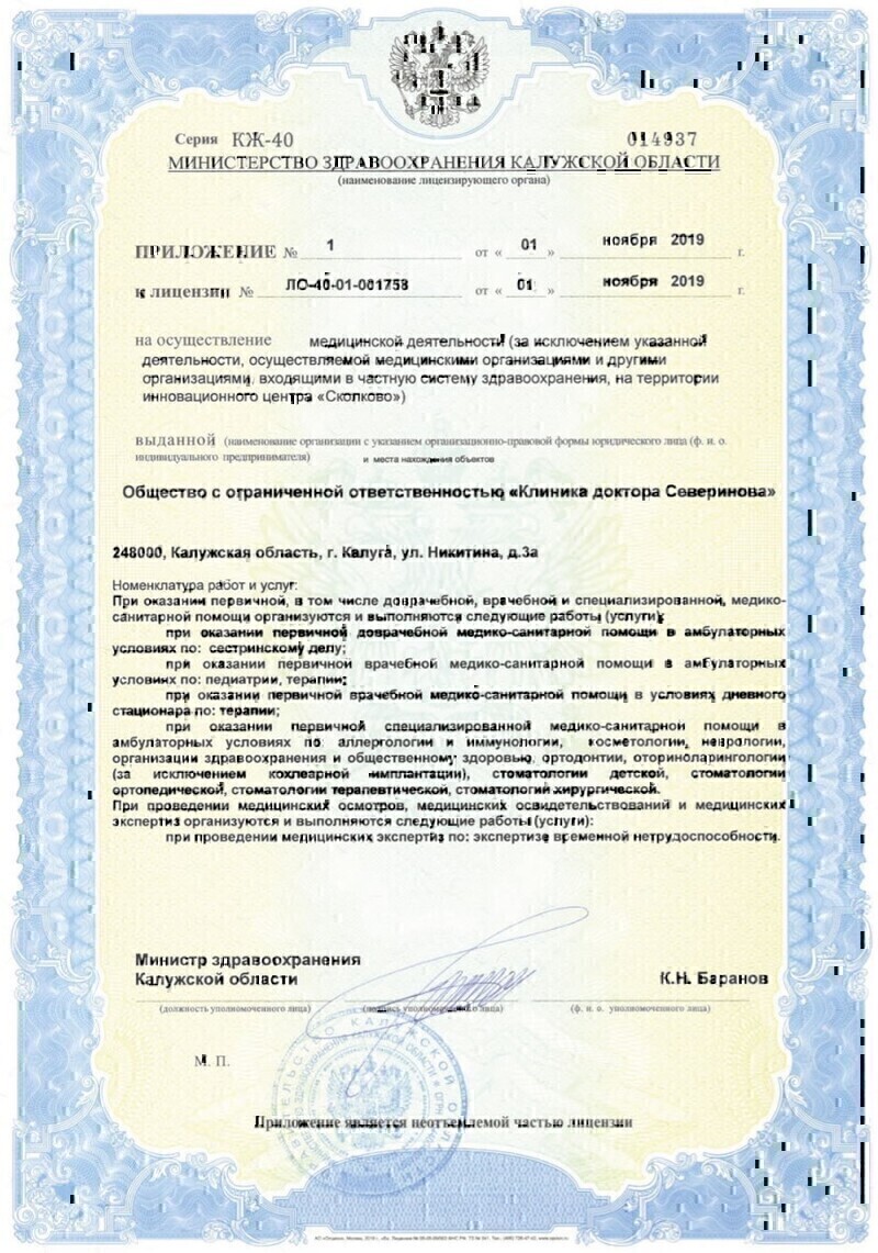 Диапазоны цен на приём врачей и специалистов, услуги и диагностику в клинике доктора Северинова в Калуге.